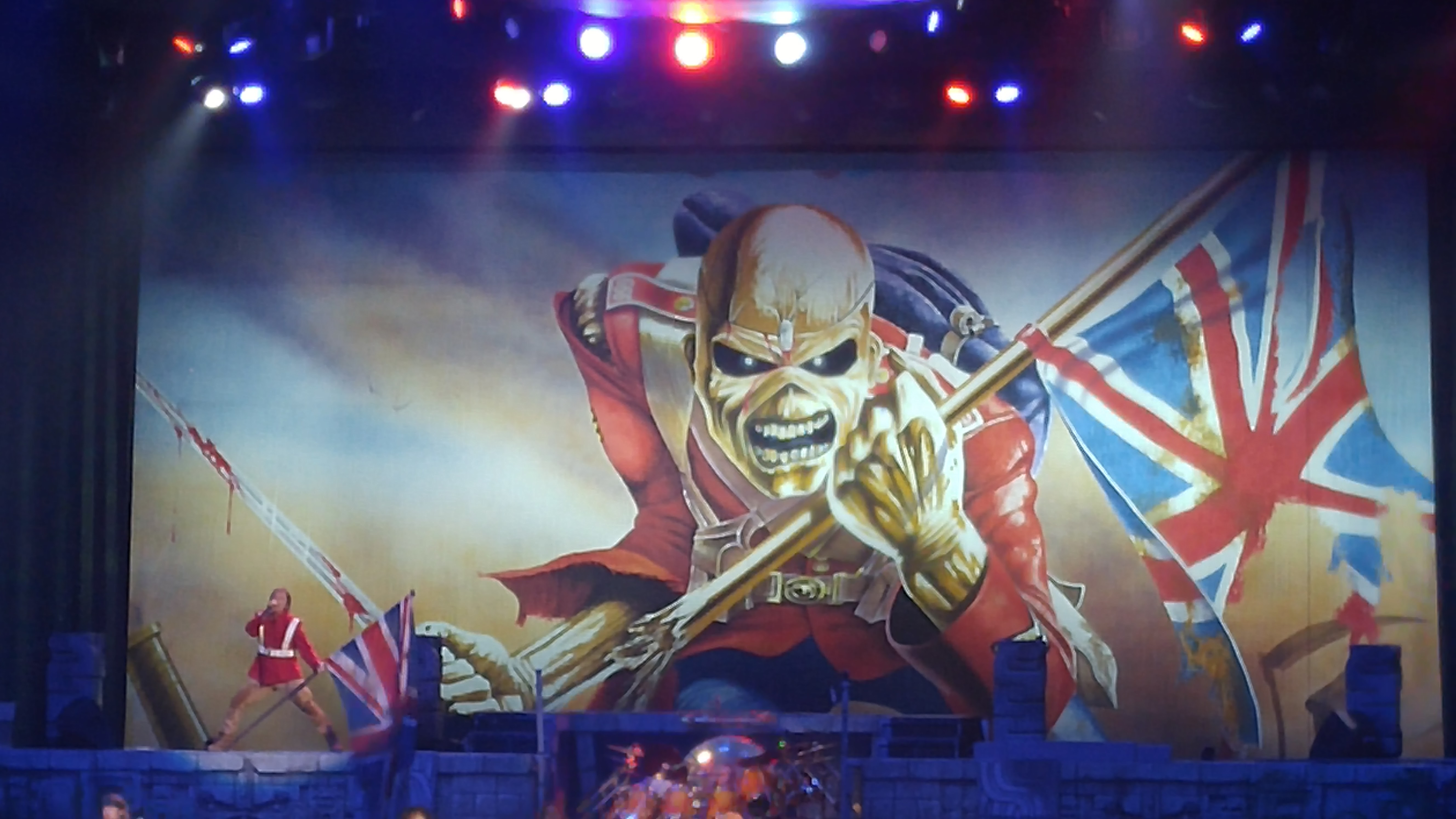 Throughout the show the back banner would change with the various incantations of Eddie, this mixed with the on stage presence of a Eddie and a about 20 foot tall blowup (I presume it was a blowup might have been a paper mache type setup) of Eddie - Eddie was all over. Picture roll ahead: