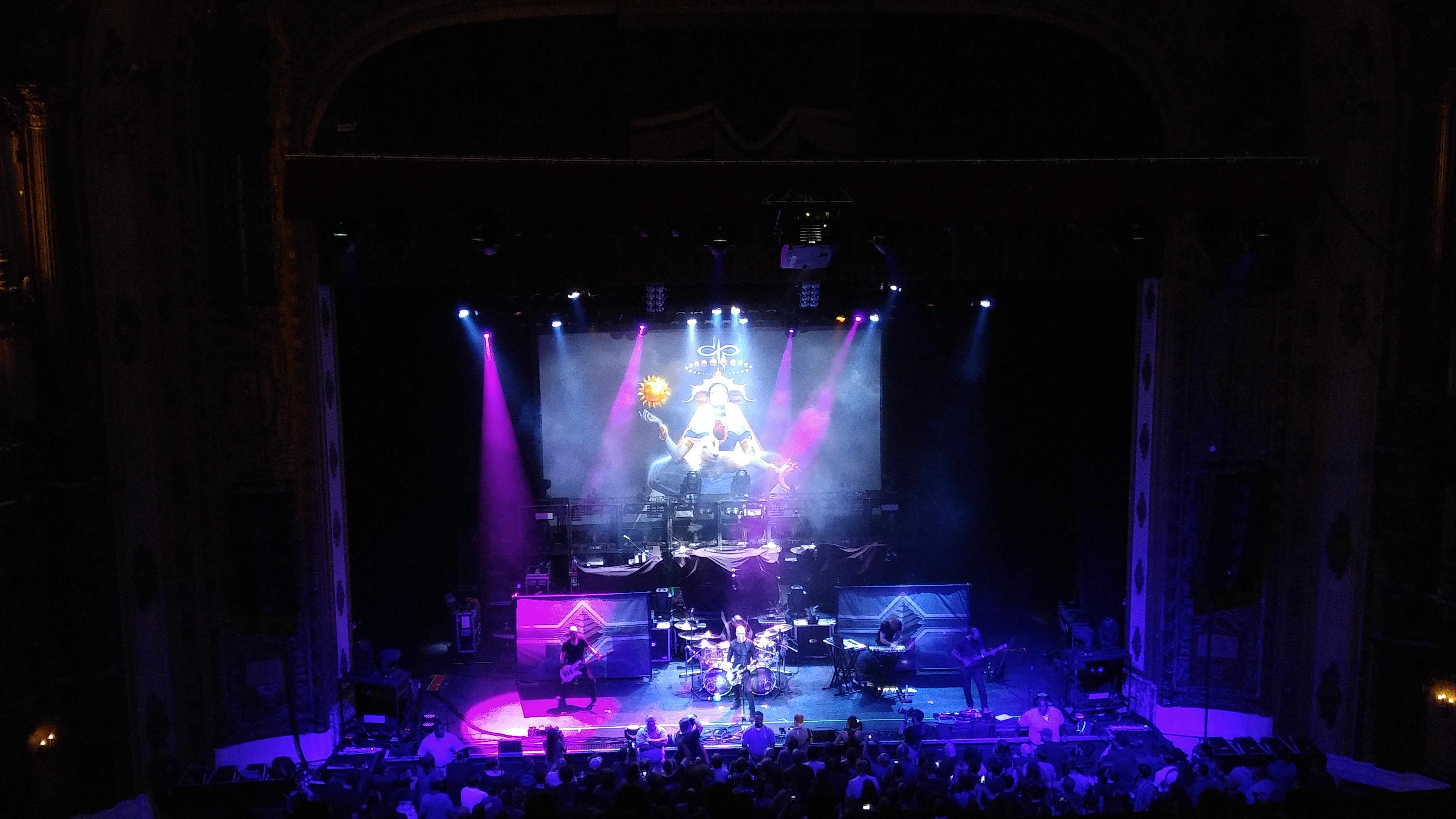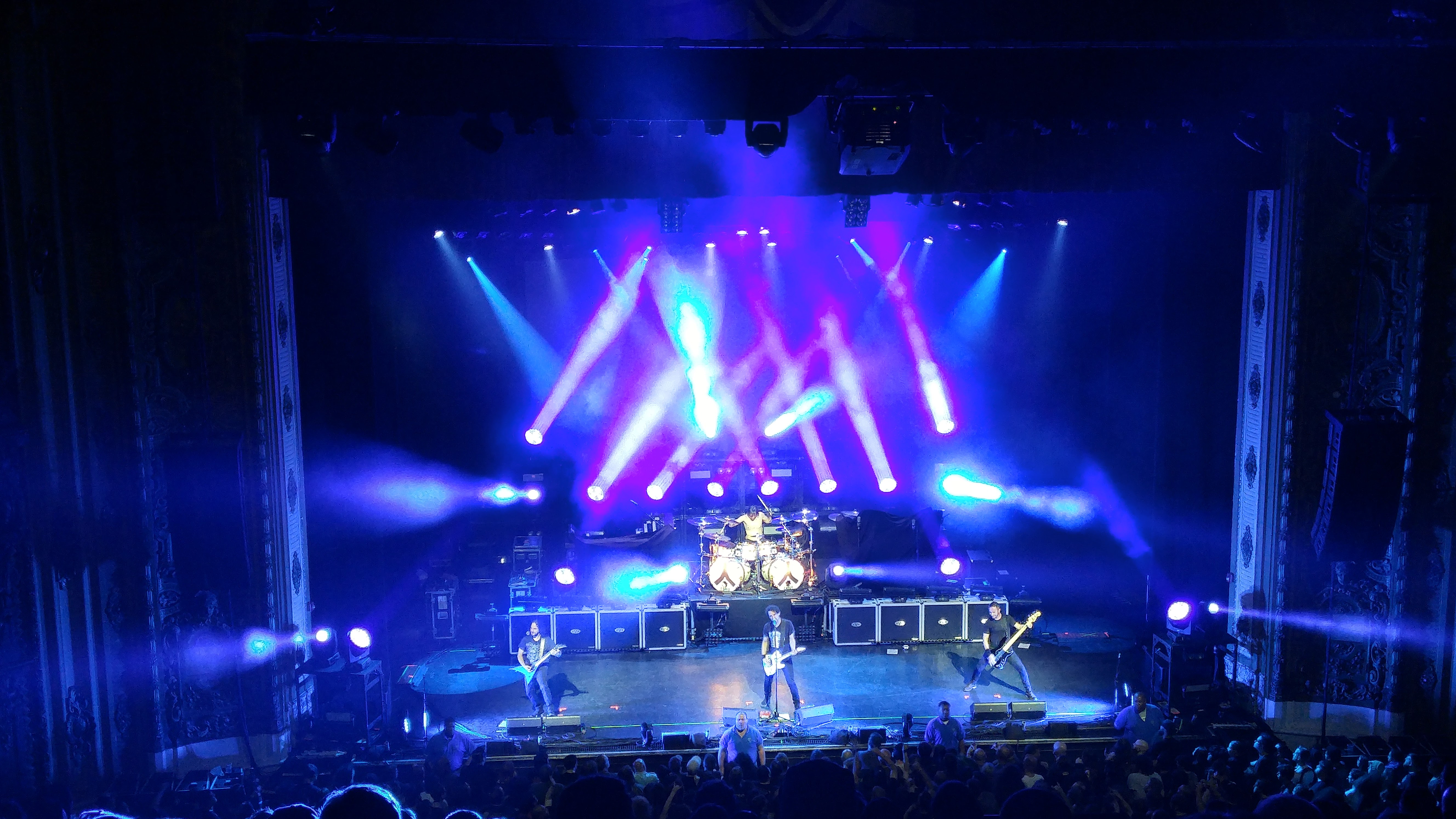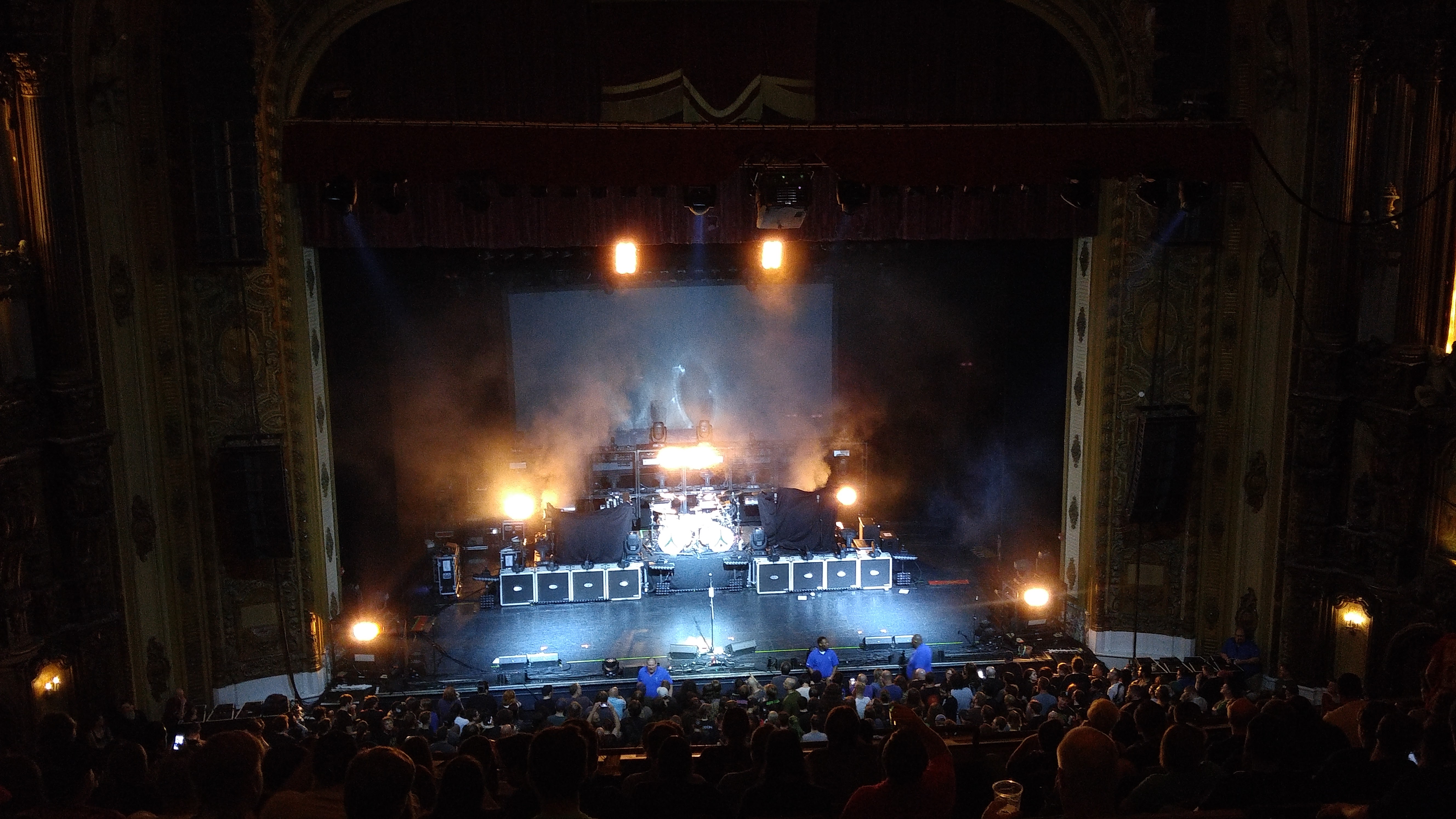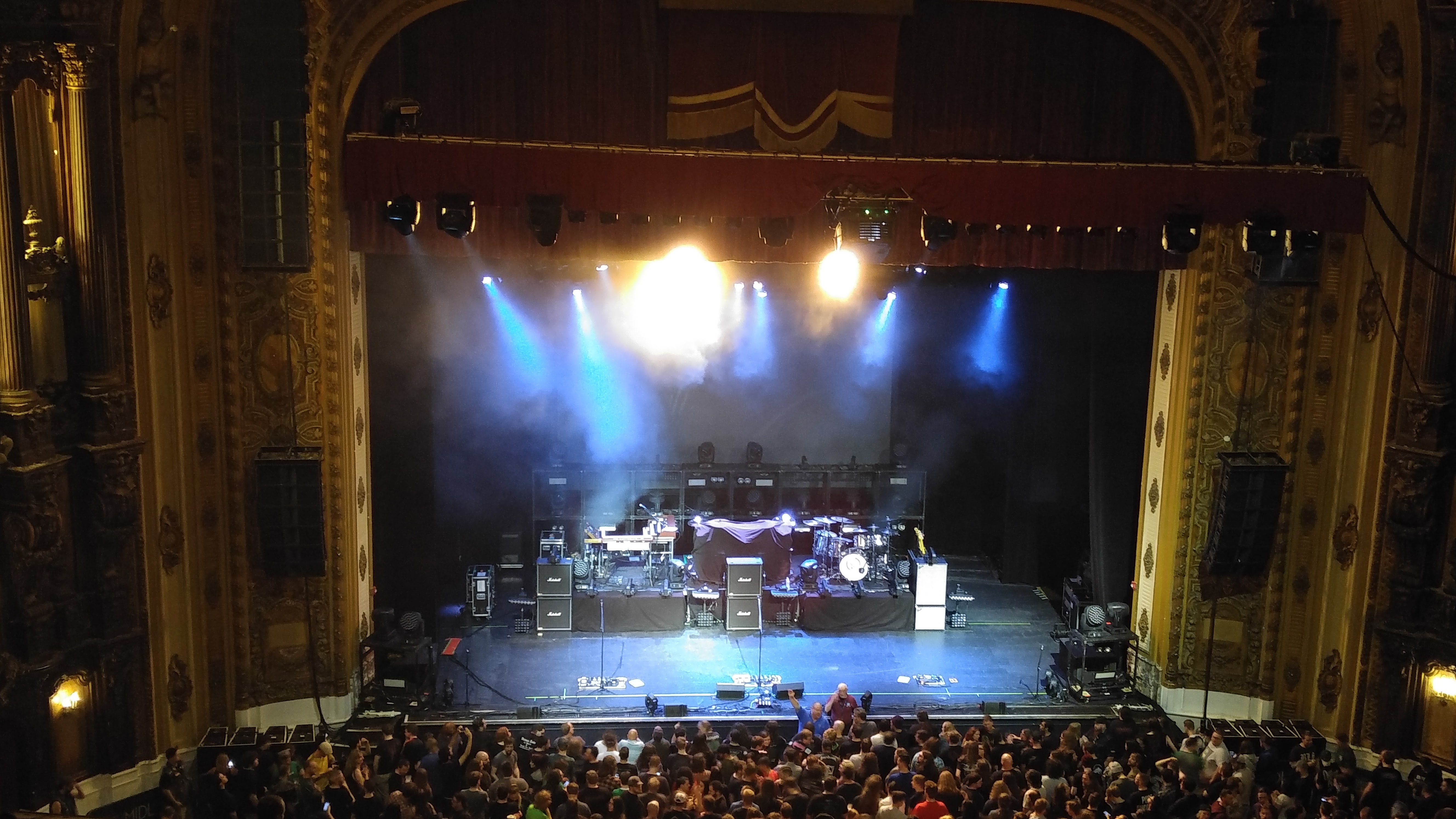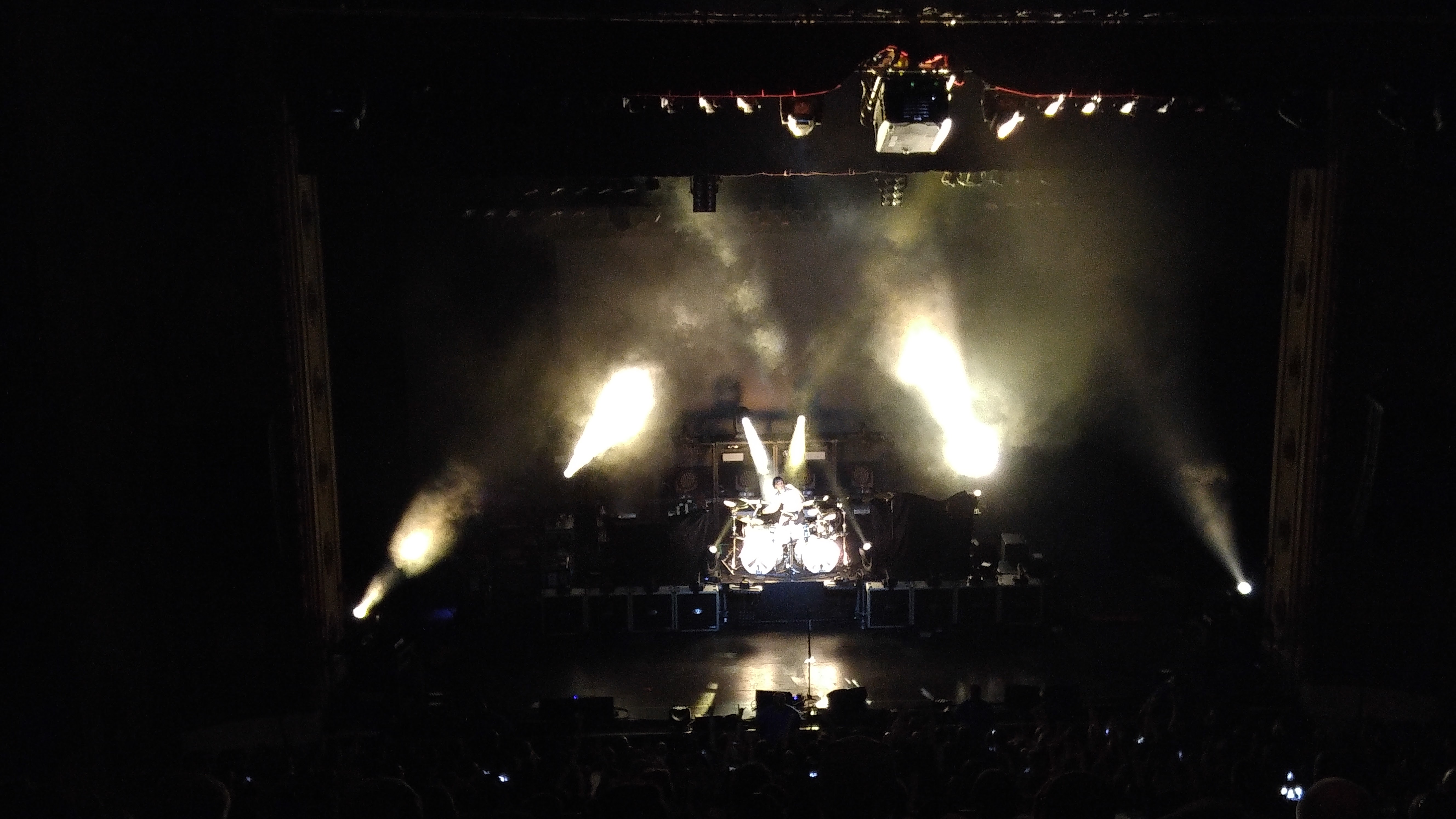 The initial set was crowded, they had all three bands set on the stage each in front of the other. From what I could tell from my four-hundreds cheap seats it looked like the opening act (The Devin Townsend Project) only had about six feet of stage: