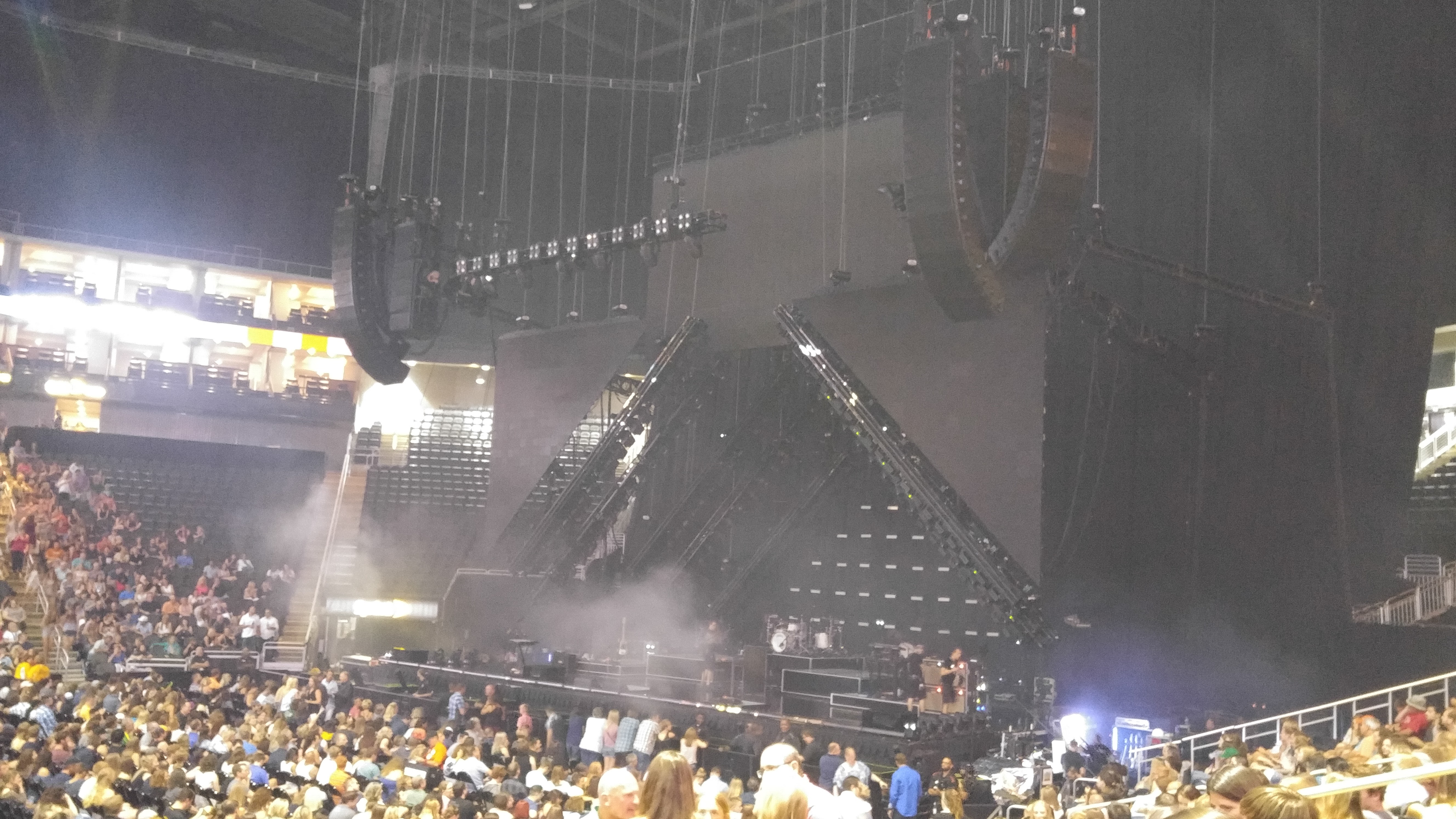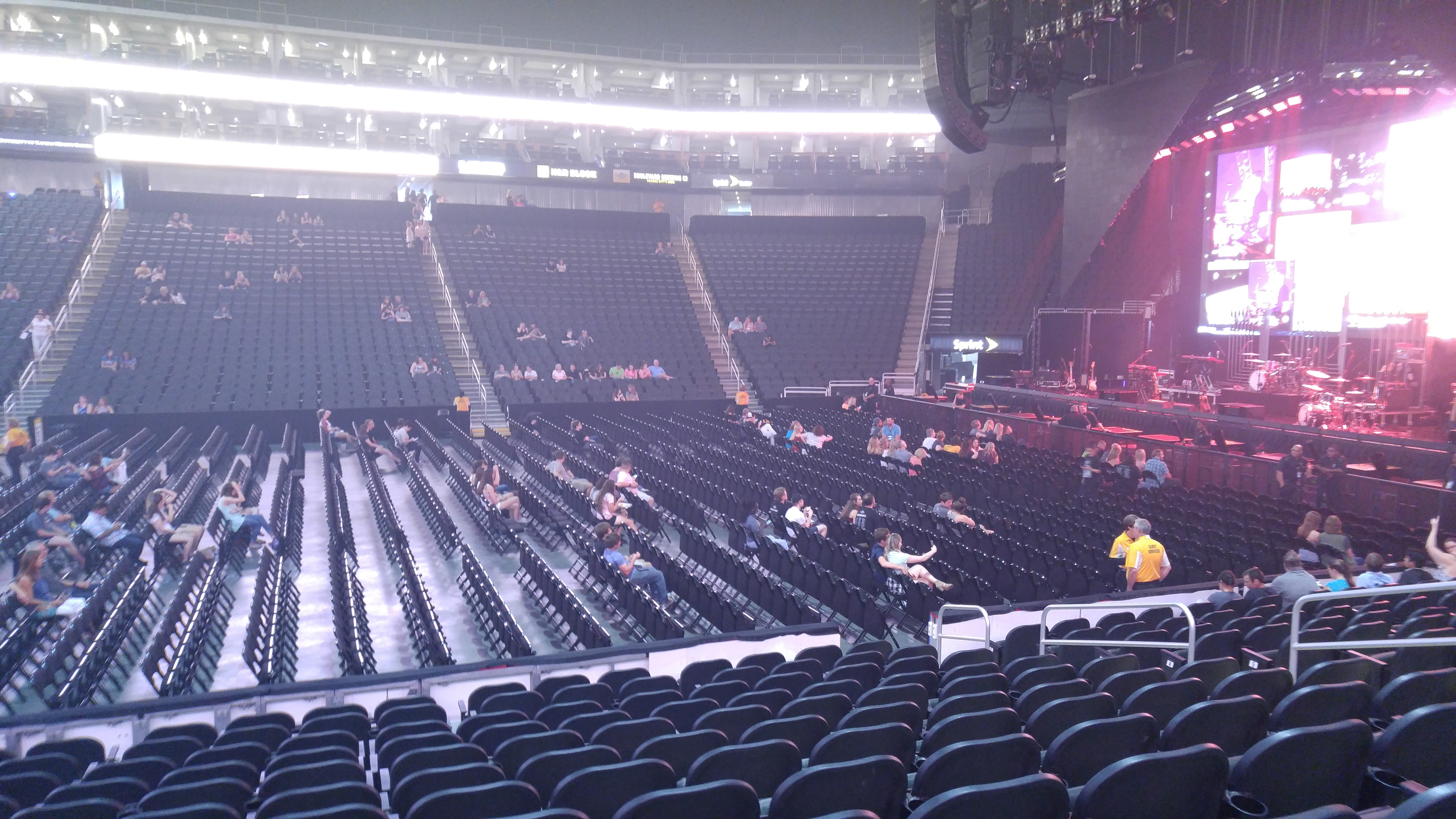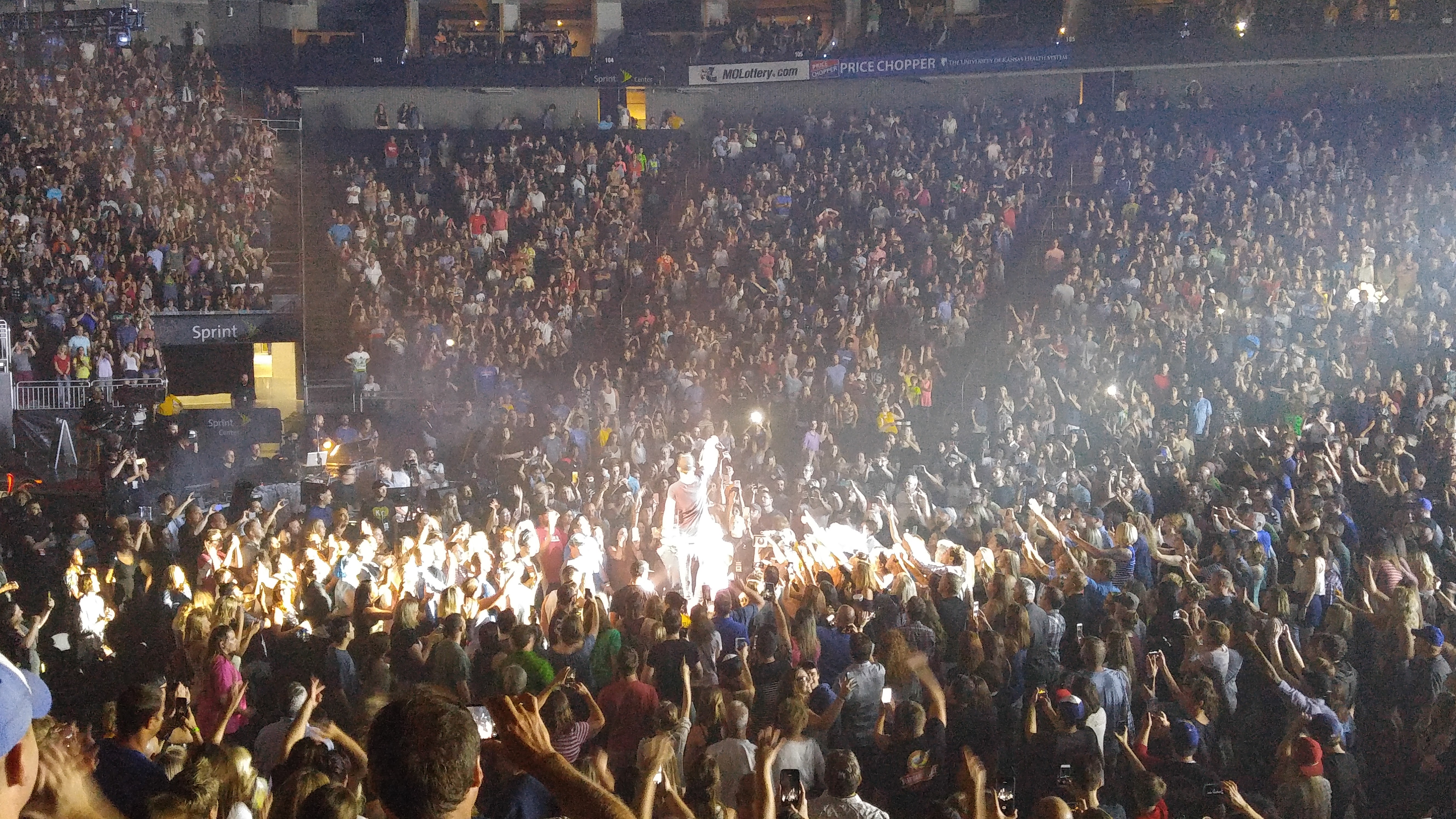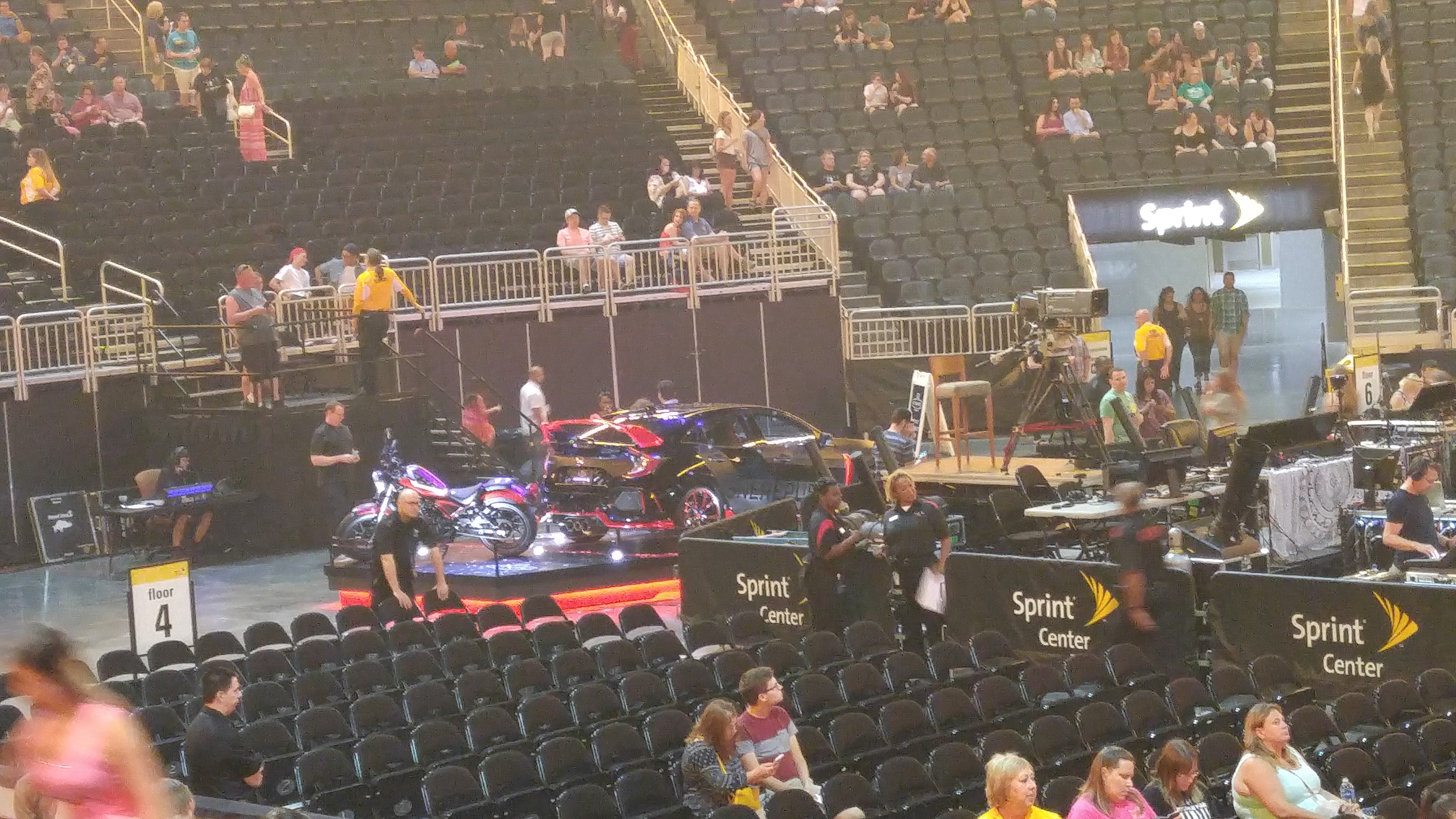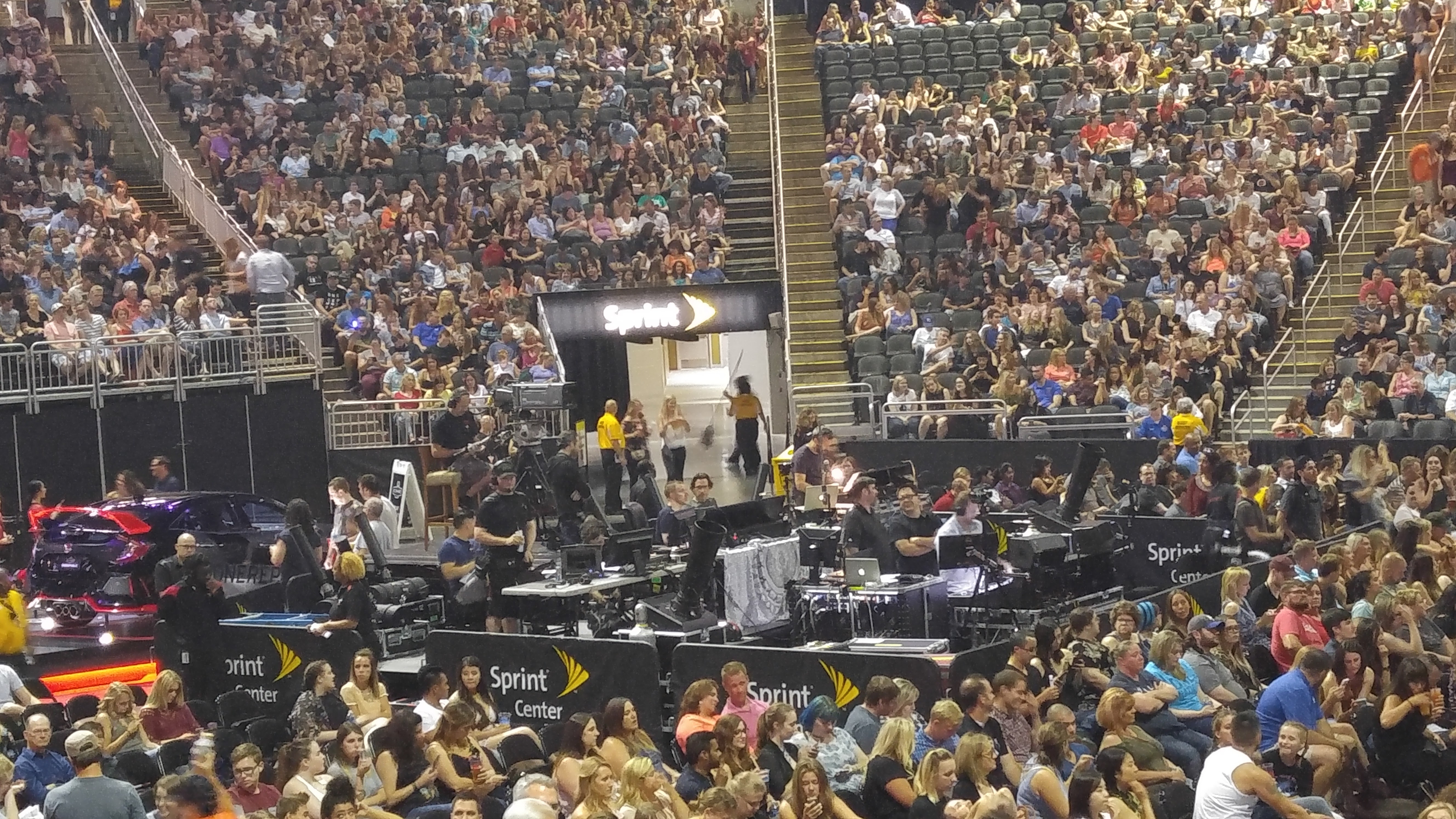 We get to Sprint Center (with Groupon tickets there you go pick up tickets at the box office) and the lady goes into the back vault of goodness and returns with Section 117, Row 12. Score! That's 12 rows from the floor about three sections to the right of the stage: