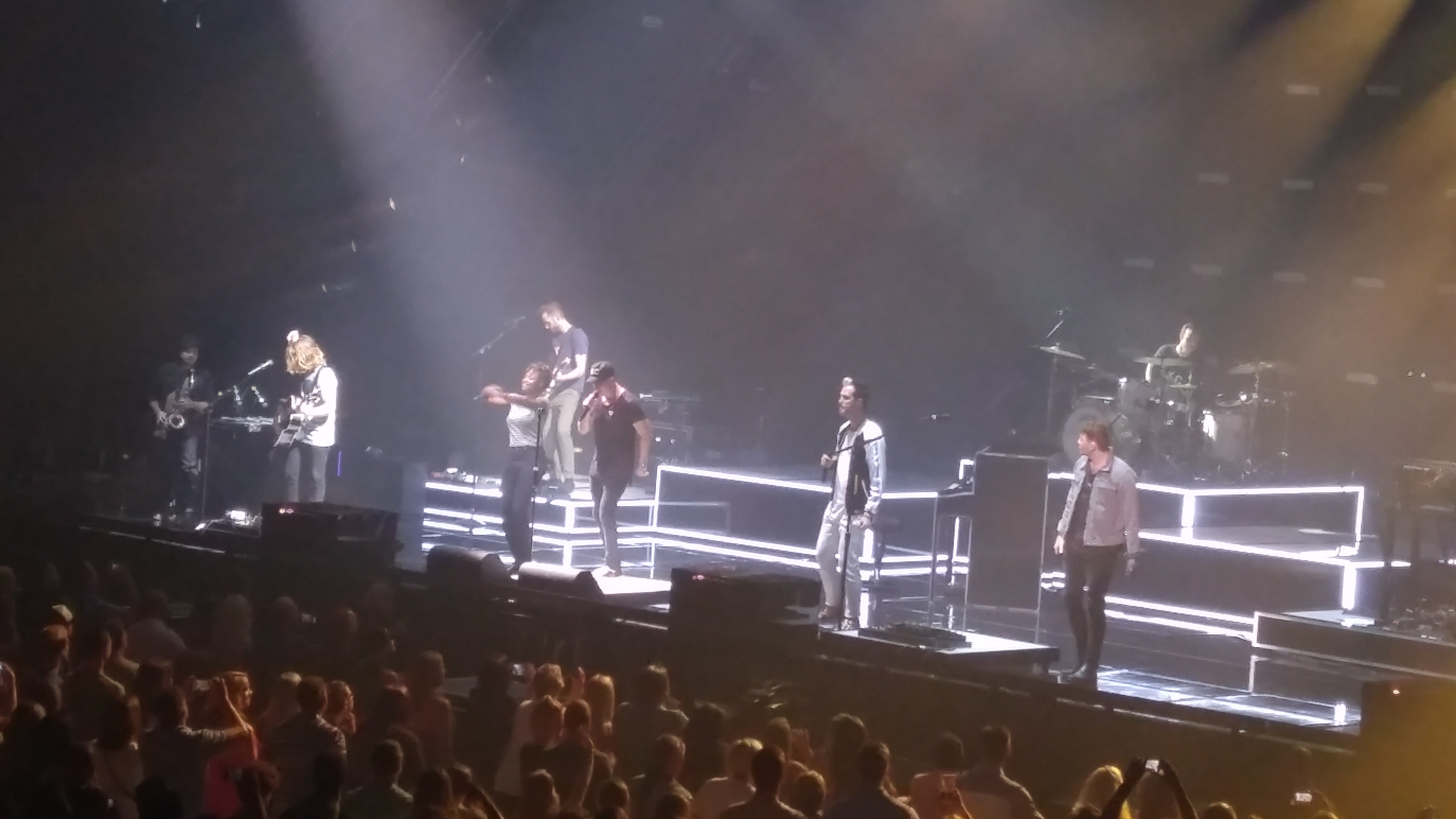 Towards the end they constructed a small stage right out in the middle of the crowd when the lights came back up Ryan Tedder (who delivered a fantastic energetic performance all night) was on that stage to the utter delight of the crowd: