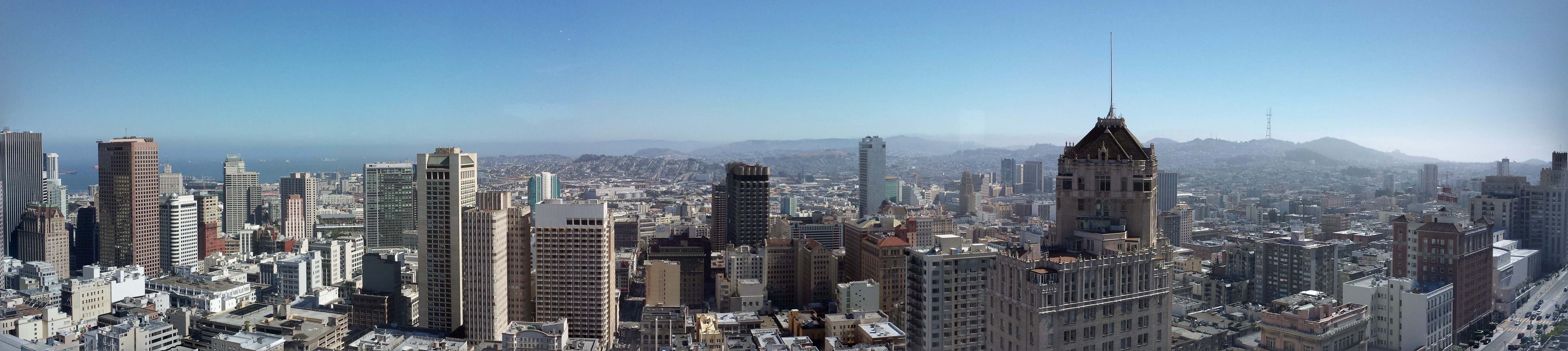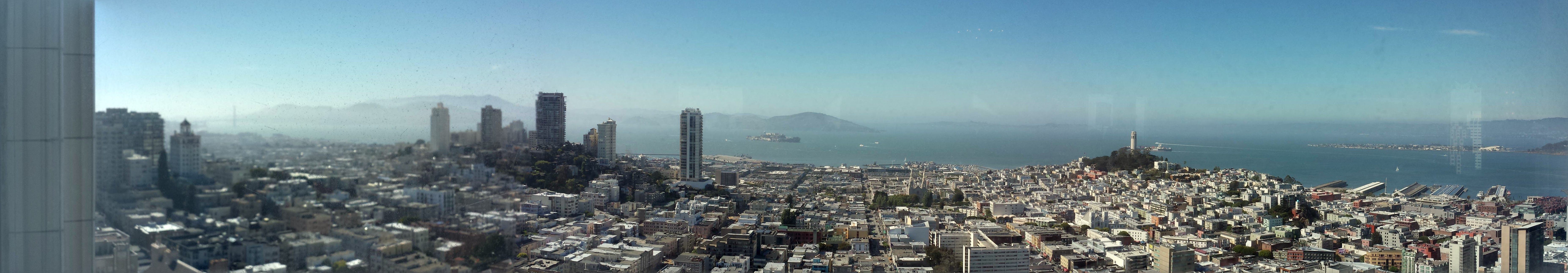 I was in San Francisco and I took these from the Crown room on the 24th floor of the Fairmont hotel. I have all my phone pictures backed up via Google and Google Awesome, was well pretty awesome and made these panoramic views from several pictures I took next to each other. Sure they are a bit grainy (they are from my Samsung G4 be nice) but you can see Alcatraz, Fisherman's Wharf and Golden Gate bridge.